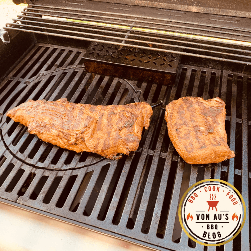 3. Das Bürgermeisterstück bis zu einer Kerntemperatur von 56 Grad Celcius ziehen lassen. Dafür am Besten ein Thermometer benutzen. Ich verwende hierfür immer meinen MEATER.