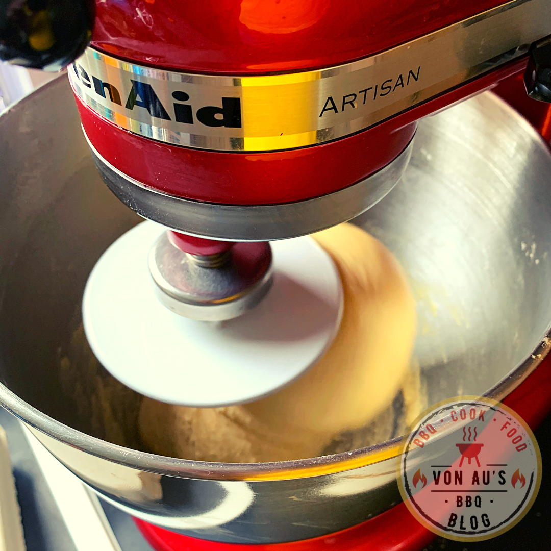 - Den Teig ca. 10 Minuten mit der Küchenmaschine, z.B. KitchenAid, kneten, bis der Teig elastisch ist und glänzt.
