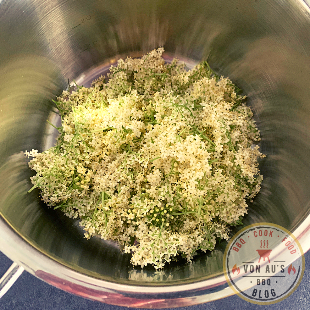 Nur wirklich reife Holunderblüten verwenden, da das Sirup sonst bitter wird. Reife Blüten sind cremefarben bis schneeweiß und verströmen einen süßlichen & intensiven Duft. Die groben Stiele der Dolden enthalten ebenfalls viele Bitterstoffe, weshalb diese unbedingt abgeschnitten werden sollten.