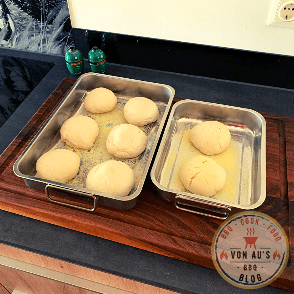 Forme auf einer bemehlten oder mit Hartweizengrieß bestreuten Arbeitsfläche faustgroße Teigkugeln (ca. 180 – 200g). Decke die Kugeln mit einem feuchten Tuch ab und lasse sie weitere 90 Minuten bei Zimmertemperatur gehen.