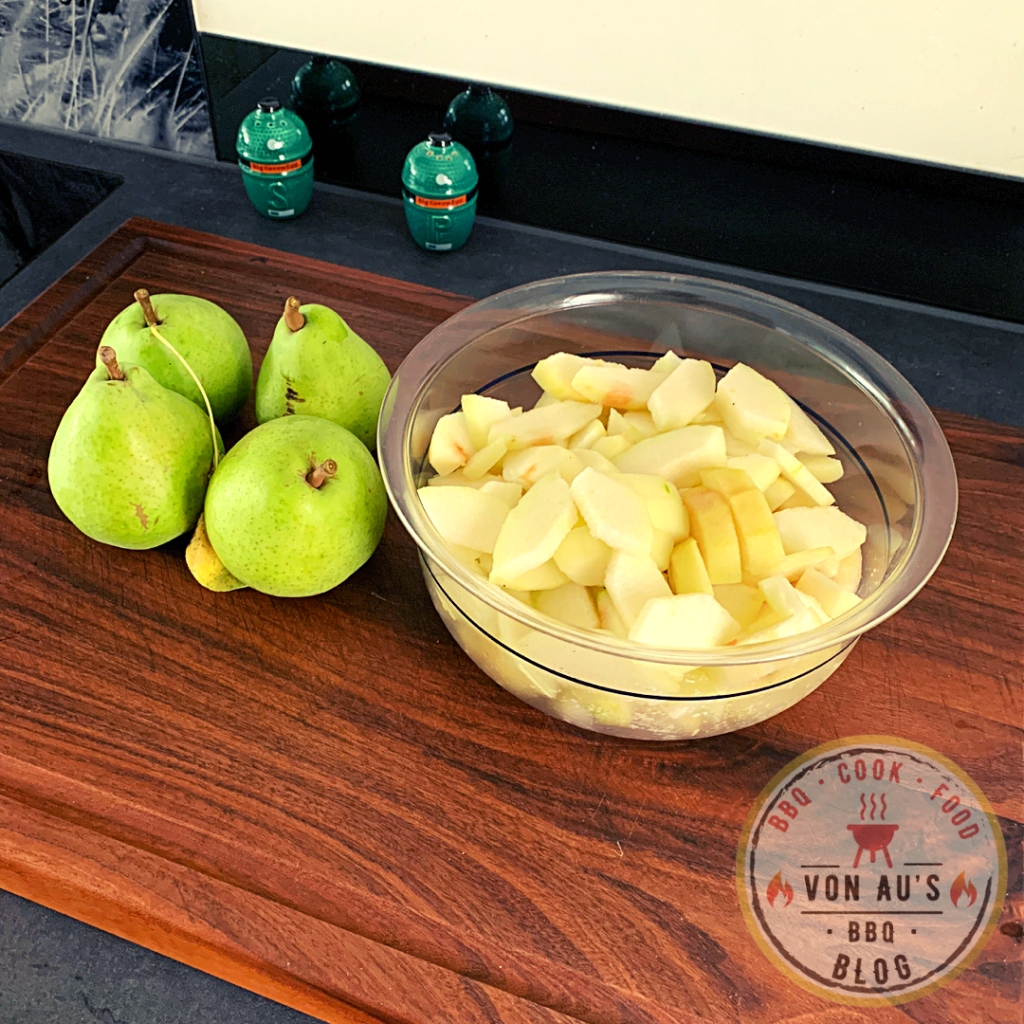 1. Birnen waschen, schälen und das Kerngehäuse entfernen.