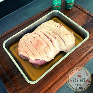Ein Spanferkelbraten, zart, saftig und voller Aromen, zubereitet auf dem Big Green Egg, ist ein wahrer Genuss für alle Liebhaber von BBQ-Köstlichkeiten. In diesem Beitrag zeige ich dir, wie du einen etwa 3 kg schweren Spanferkelbraten auf deinem Big Green Egg perfekt zubereiten kannst, indem du die Technik der indirekten Hitze verwendest und das Fleisch über Nacht in Bier einlegst, während die Schwarte mit einer köstlichen Salzkruste veredelt wird. Dazu gibt es leckere Smashed Potatoes & Röstzwiebeln vom Weber Grill mit leckerer selbstgemachter Joppie Sauce.
