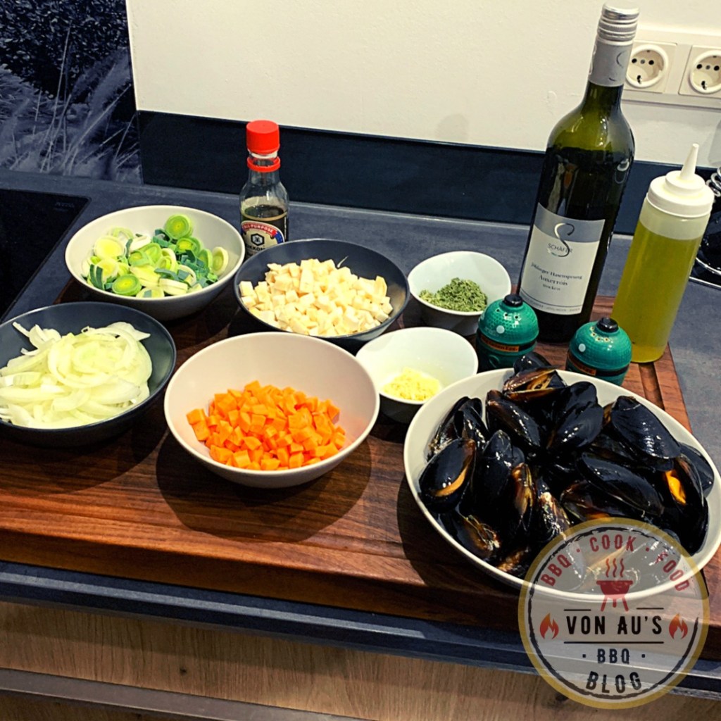 13. Den Wok aus dem Big Green Egg nehmen und die Muscheln in eine schöne Schüssel geben. Mit dem Baguette bzw. Brot servieren.