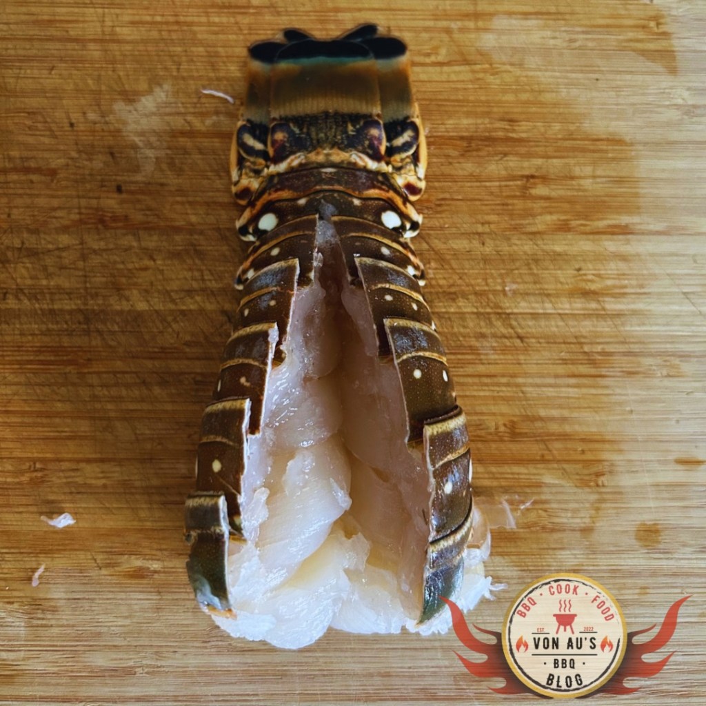 Als nächstes gilt es, die Langustenschwänze aus ihrer Karkasse zu lösen. Dies erfordert etwas Fingerspitzengefühl und Geduld, aber das Ergebnis wird es wert sein. Nachdem die Schwänze freigelegt sind, schneidet man den Panzer vorsichtig oben mittig bis zur Schwanzflosse auf. Wichtig ist hierbei, dass ihr nicht durchschneidet, sondern nur bis zum Beginn der Flosse schneidet.