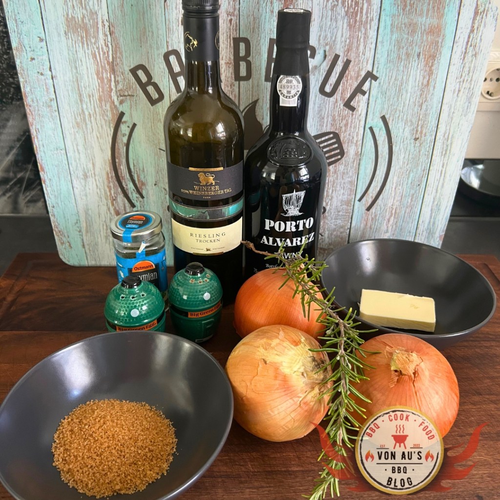 - Die Rotweinzwiebeln passen sehr gut zu Wildschweinbraten vom Big Green Egg