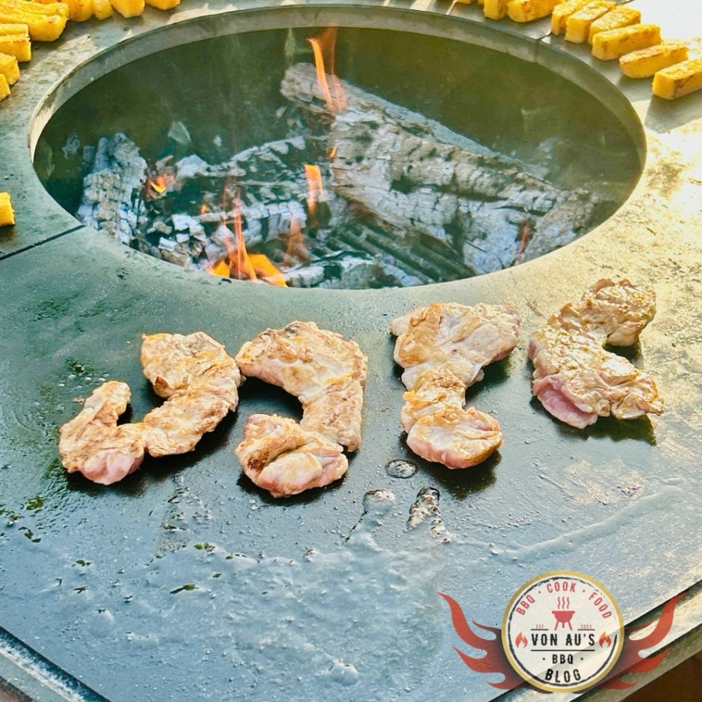 Auf der Lavasteinplatte braucht Kachelfleisch nur wenige Minuten pro Seite. Die Hitze muss hoch, aber nicht unkontrollierbar sein.
