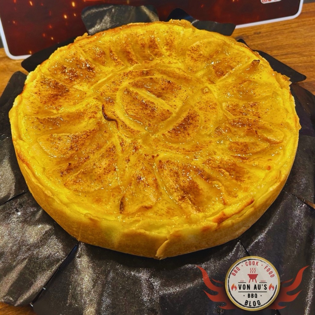 - Big Green Egg: Indirekte Hitze bei ca. 175–180 °C. Kuchen hineinstellen, Deckel schließen.