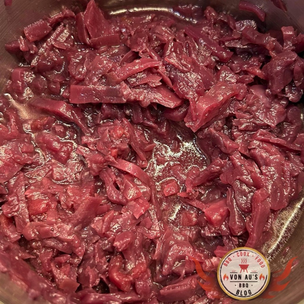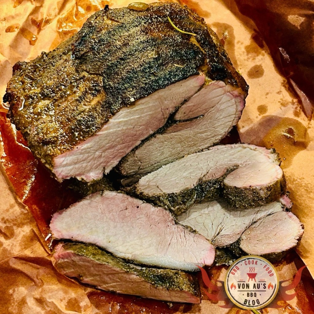 Das Schöne: durch die lange Ruhezeit verbinden sich die Gewürze mit dem Fleisch und man bekommt schon beim Auspacken diesen typischen, würzig-waldigen Duft in die Nase.
