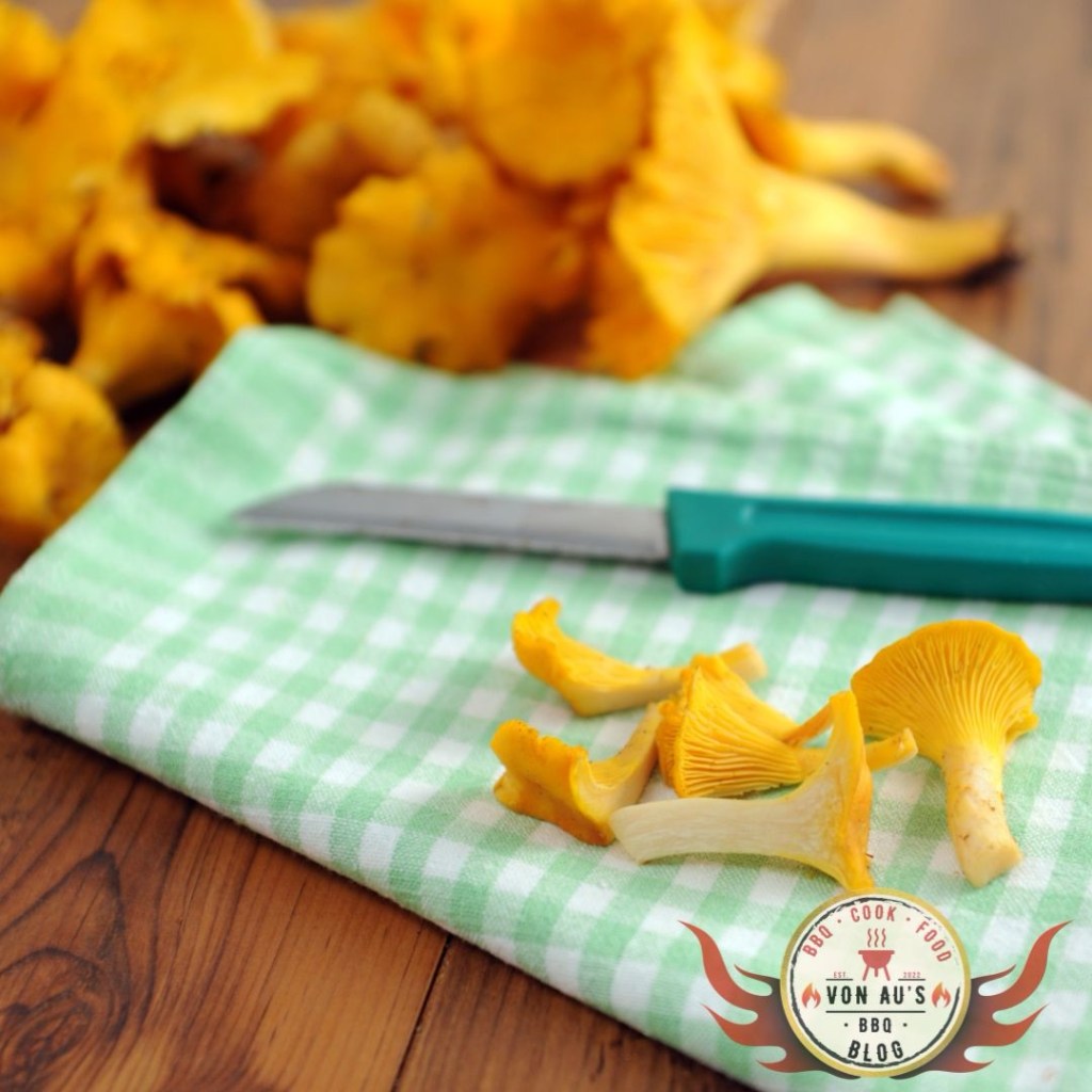 Pfifferlinge haben eine feste Struktur, sind aber dennoch empfindlich. Sie brauchen etwas mehr Aufmerksamkeit beim Putzen, sonst knirscht es später beim Essen zwischen den Zähnen – und das ist wirklich das Letzte, was man beim BBQ erleben möchte.