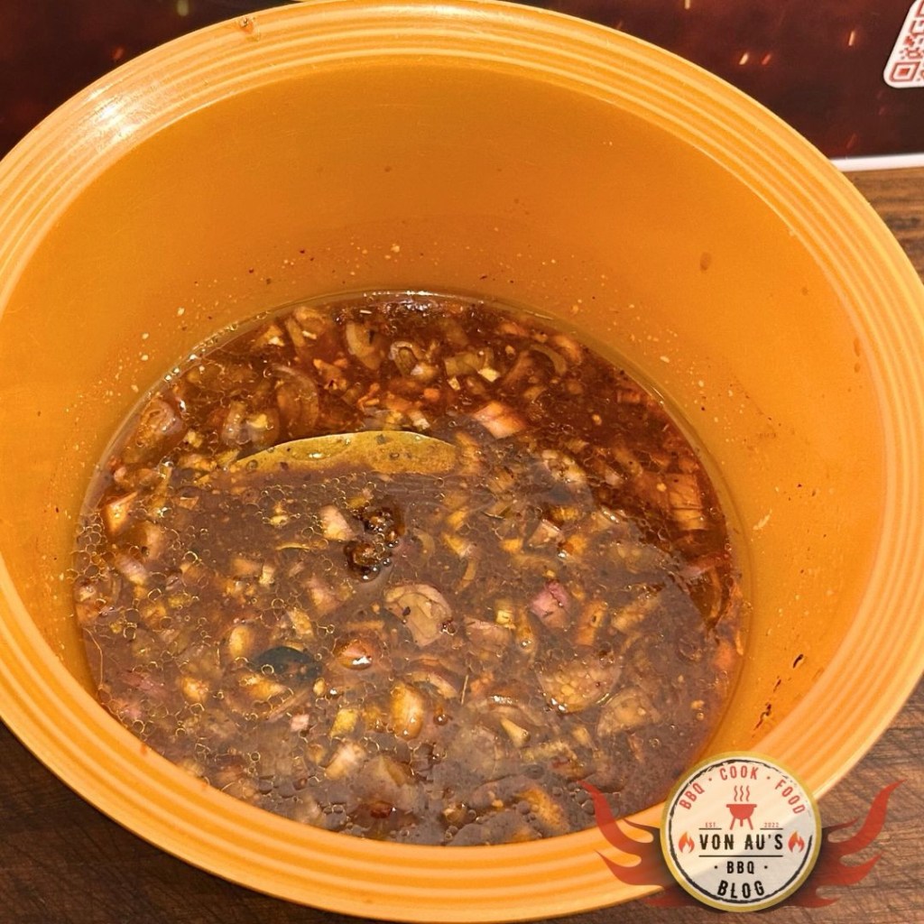 Die Steaks durften so etwa 4 Stunden im Kühlschrank ziehen – perfekt, um Geschmack aufzunehmen, ohne dass die Säure das Fleisch zu sehr „anlöst“.