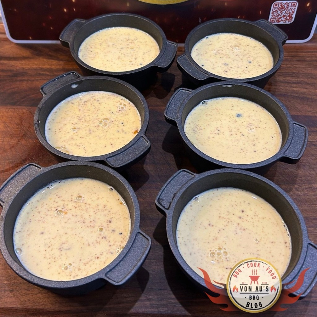 - 45–55 Minuten garen, bis die Masse leicht wackelt, aber nicht flüssig ist.