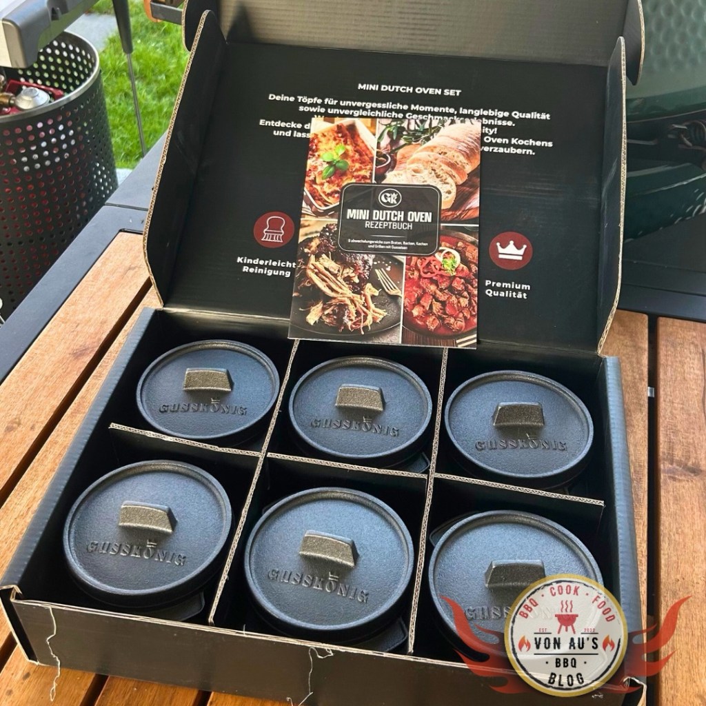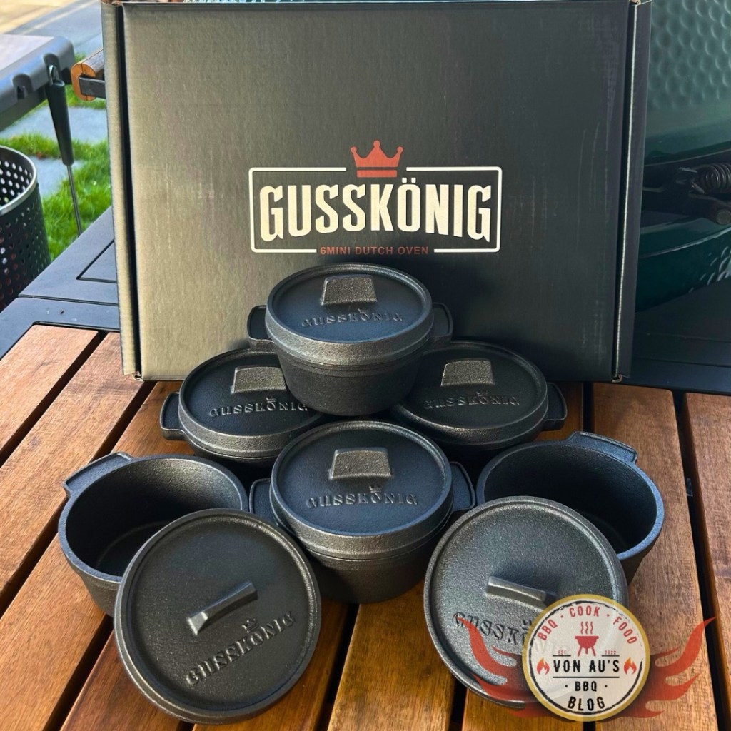 Dutch Oven gehören für mich ganz klar zur Grundausstattung jeder ernstzunehmenden BBQ- und Outdoor-Küche. Sie stehen für Ursprünglichkeit, für Feuer, Zeit und Geschmack. Während die klassischen großen Feuertöpfe meist für Schmorgerichte, Brot oder Longjobs genutzt werden, eröffnen die Mini-Dutch Oven* von Gusskönig* eine völlig neue Welt: portioniert, kreativ, vielseitig – und unfassbar stylisch.