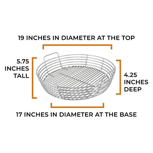 Der Kick Ash Basket* ist ein Edelstahl-Kohlekorb, der den traditionellen Grillboden ersetzt oder ergänzt. Du platzierst ihn dort, wo sonst einfach die Holzkohle im Grill liegt – also direkt über dem Aschebereich deines Kamados oder Grills.
