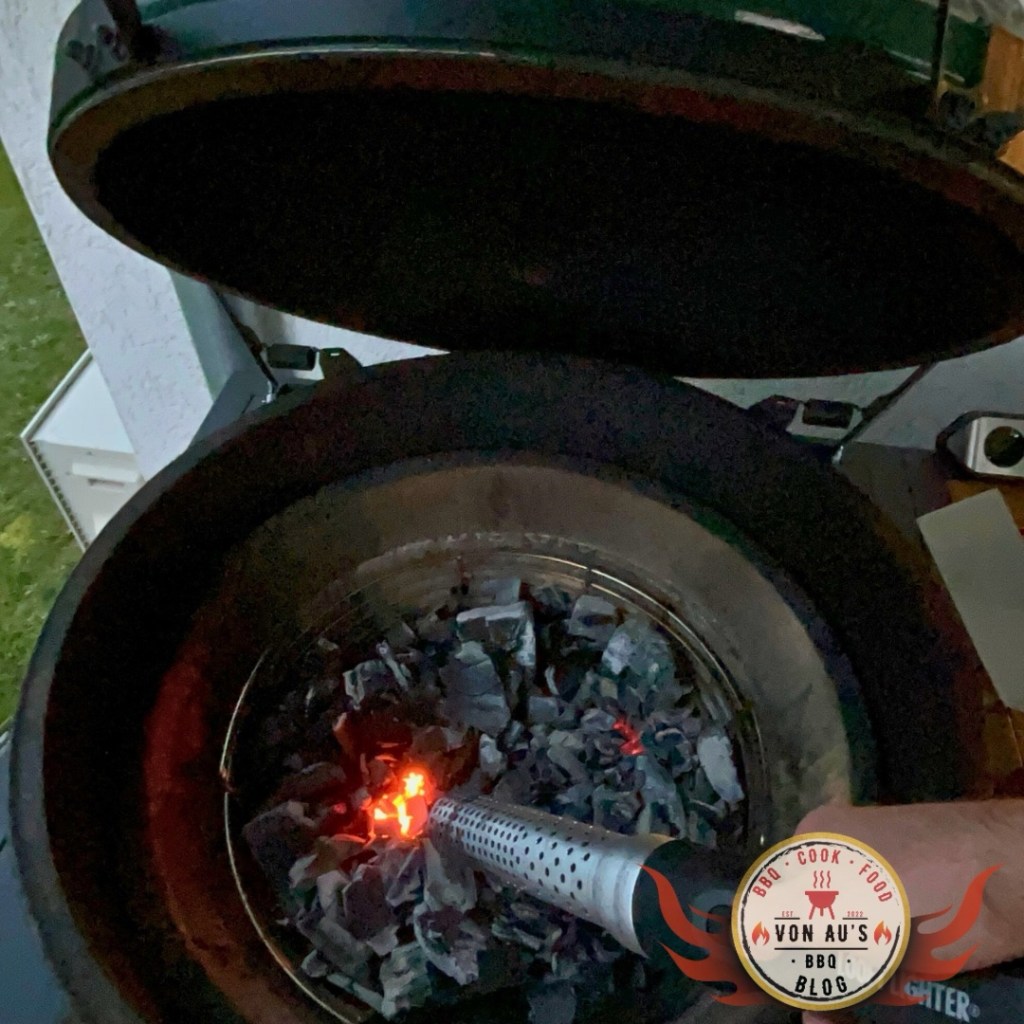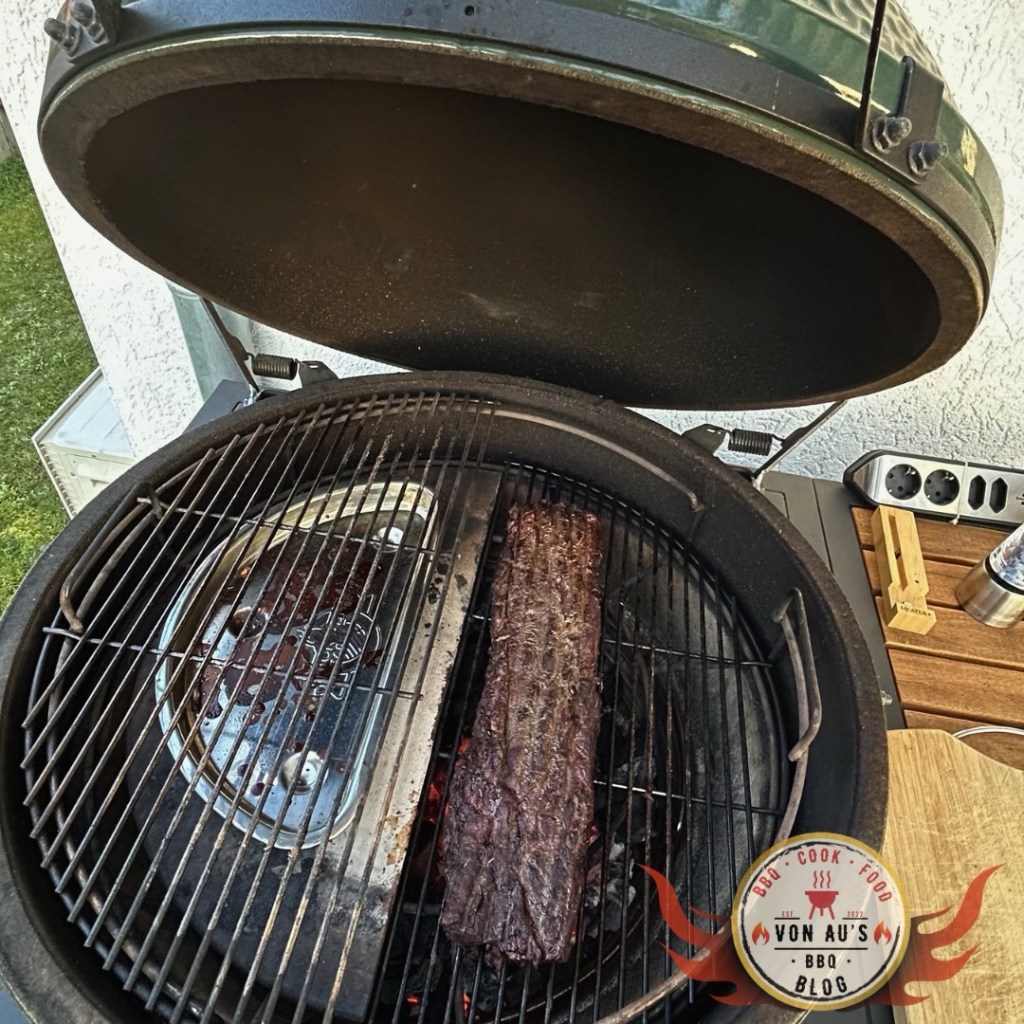 Am Grill lief alles klassisch über das Big Green Egg im indirekten Setup bei etwa 110–120°C.