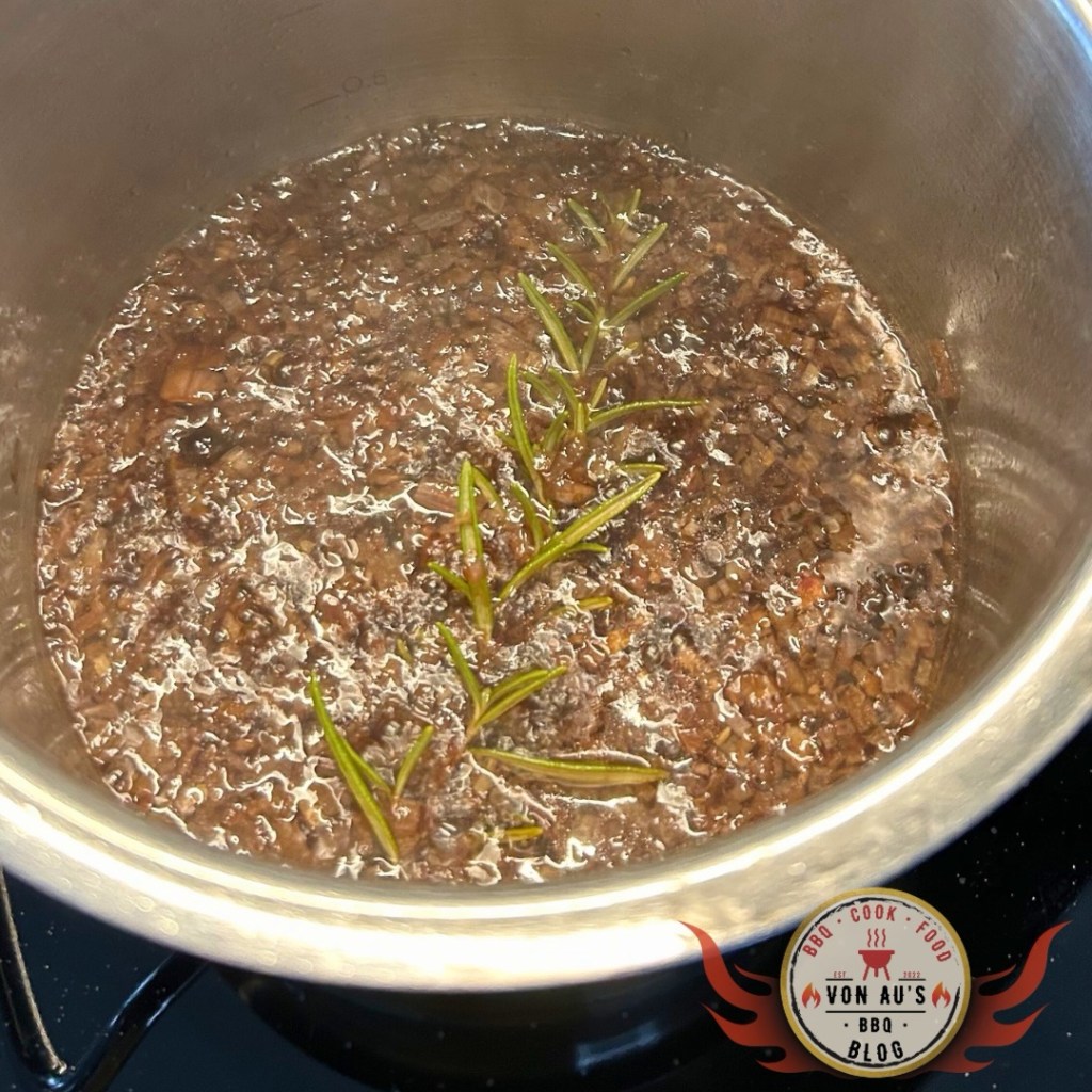 Rotwein, Wild-Fond, Wacholder, etwas Süße – und natürlich auch hier wieder eine Prise vom Tanne-Kiefer-Buchecker Rub*.