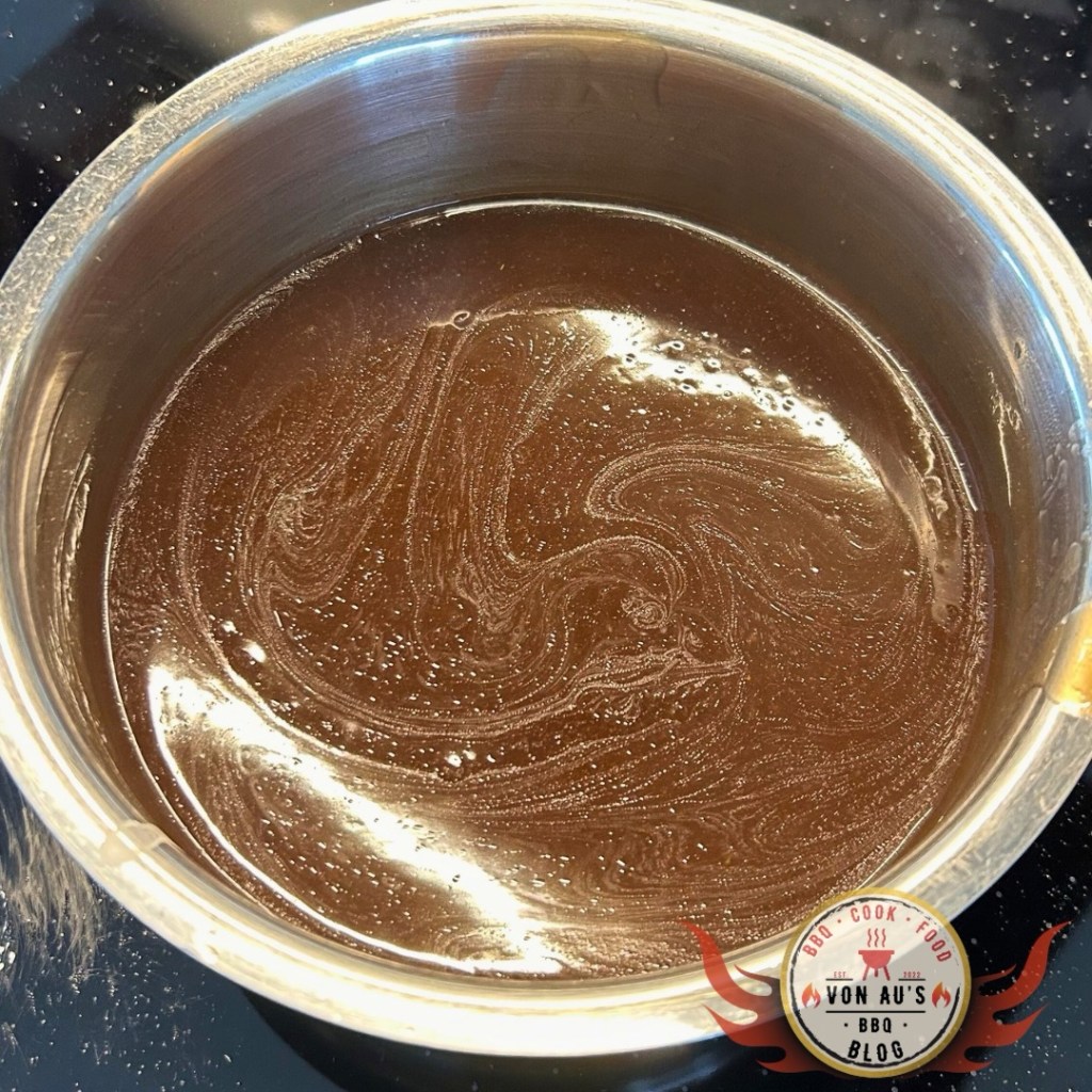 - Fond dazugeben und erneut einkochen lassen (sirupartig!).