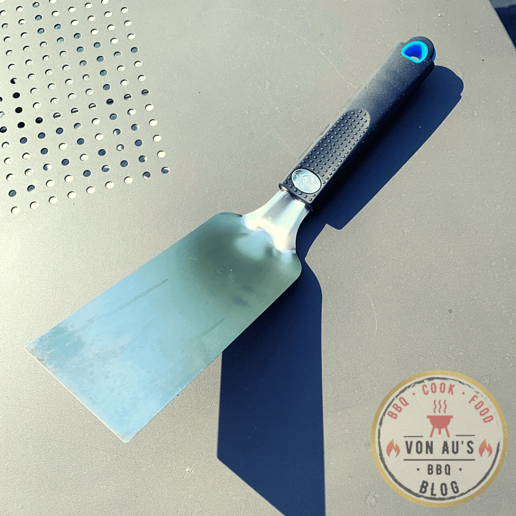 Wenden, heben, tranchieren, schneiden und servieren, alles in einem Tool. Hilft auch bei der Reinigung Deiner Plancha.